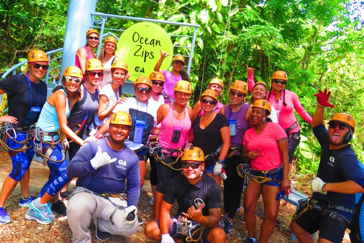 Wear comfortable clothing you donβt mind getting a little sweaty or wet and that will not interfere with the adjustment of the harness or helmet. Our guests do the tour in shorts, T-shirt and running shoes; (skirts, dresses and bathing suits are not appropriate). Closed-toe sport shoes provide the best protection for your feet however strap-on sandals are acceptable; you may not do the tour in bare feet. Please bring a hair tie if you have long hair.